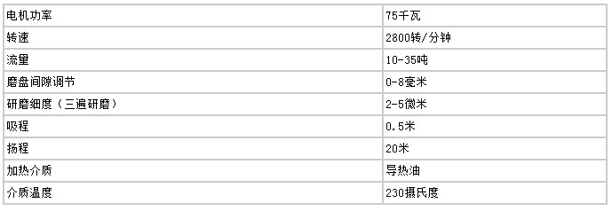 高速剪切均化磨技術(shù)參數(shù)(20T/小時)